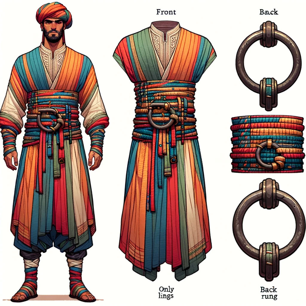 Ziraya HarnessThe ziraya is a multifaceted item, deeply ingrained in the lives and traditions of Corsairs from various backgrounds. Primarily serving as a safety harness, its much more; it's a symbol of community, identity, bonds, trust, and even love. The ziraya is a tradition of the Seaborn whose function, custom and symbolism was inherited by the Corsairs, for whom Seaborn make up a formidable percentage of the ranks.
